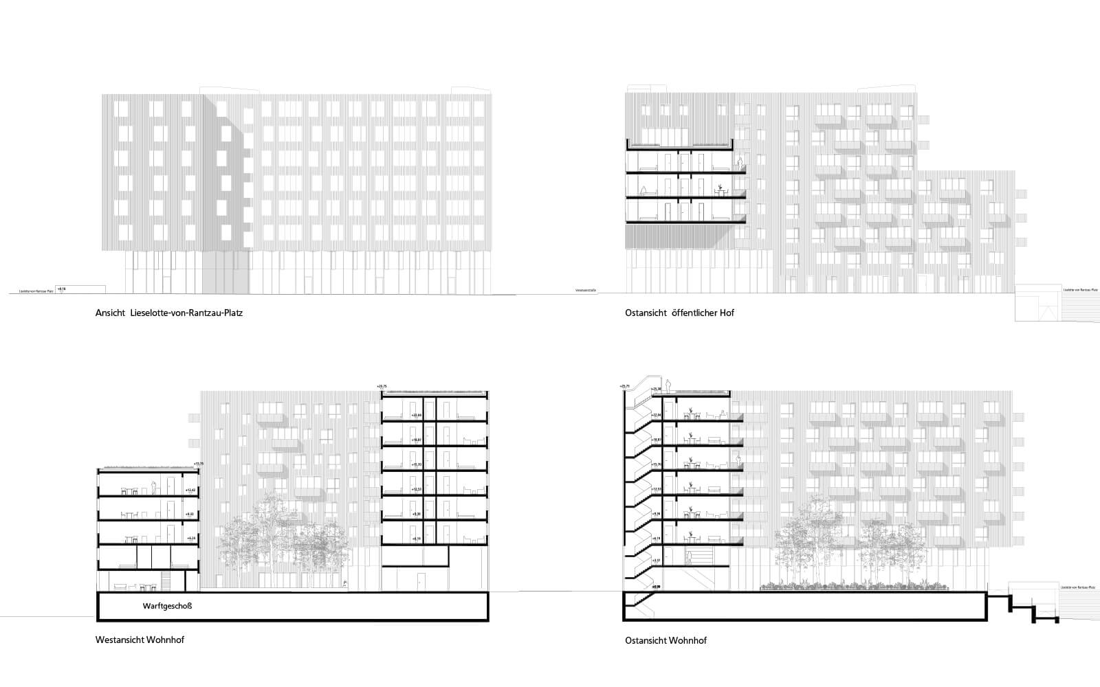 This form of understatement allows the building to think from the inside out, while at the same time establishing ambiguous relationships with the respective outside spaces and ensuring optimised living and working layouts for the most diverse forms of living. The "house wrapped in cloth" integrates confidently and naturally into the future urban fabric.