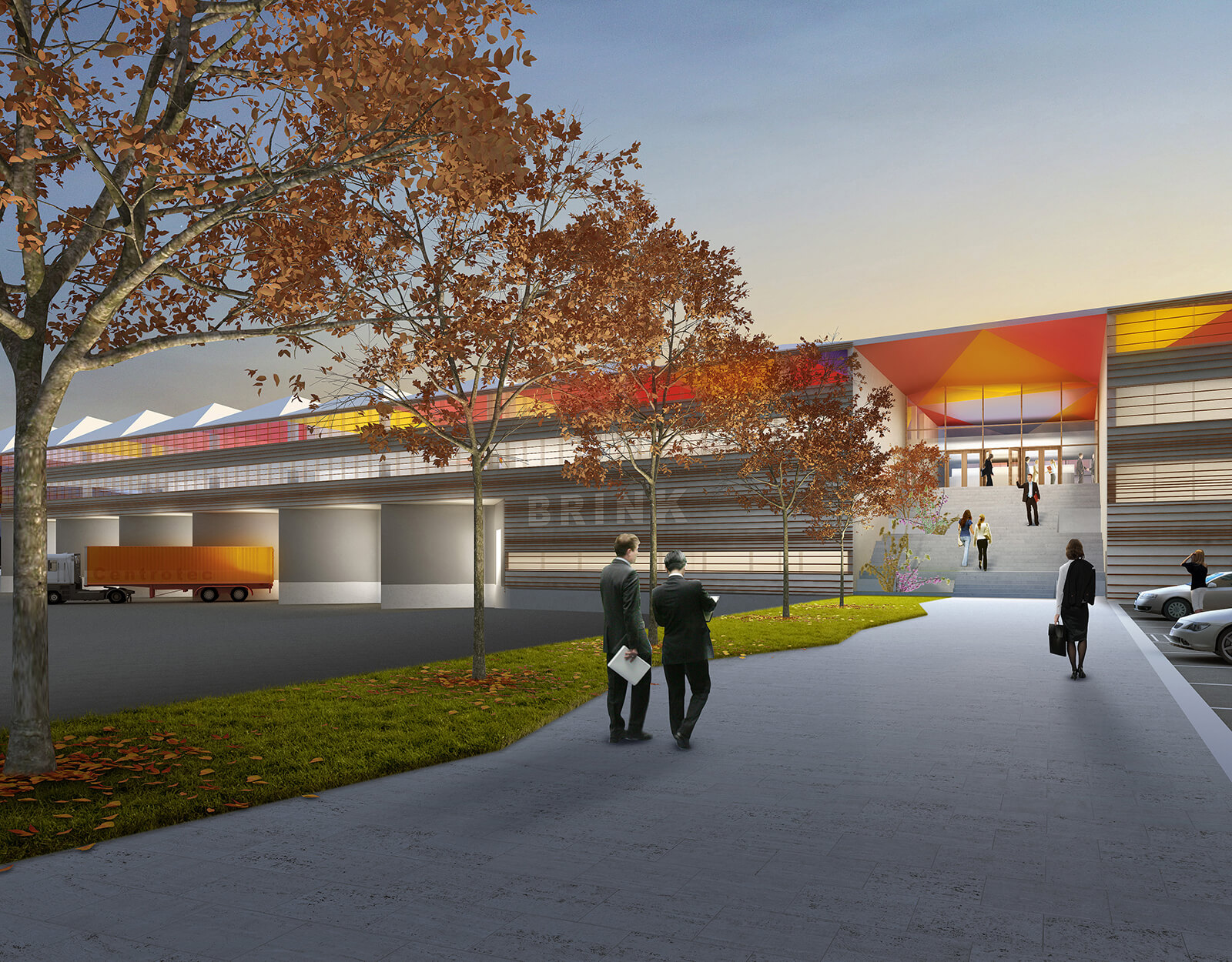 Dem exponierten Standort in Staphorst begegnet das Konzept mit der Geste eines grossen aufgefalteten Daches. Die in Teilen verglasten Fassaden geben Einblick in die Prozesse der Produktion, das Hauptaugenmerk liegt aber auf der Unterseite des Daches. Bereits aus der Ferne ist eine eigene Farbwelt erkennbar, die dem gesamten Produktionsprozess eine sinnlich artifizielle Aura verleiht und gleichzeitig als Sinnbild des Energiedaches gelesen werden kann. Die sinnstiftende Verortung des Hauptsitzes von Brink findet über den „künstlichen Himmel“ des Daches statt.