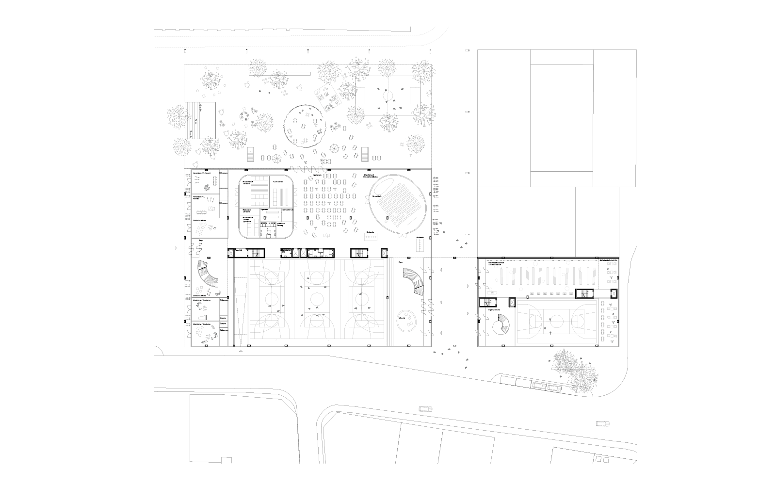 In Analogie zur heterogenen gewachsenen Stadt als Handlungsraum, bilden gerade die individuellen Unterschiede von Menschen die zentralen Ausgangspunkte für das Gelingen eines integrativen Bildungs- und Lernansatzes. Als Entrée und Stadtfoyer dient ein fliessender Raum, der sich mit seinen Angeboten niederschwellig an alle Bewohner des Stadtquartiers richtet.