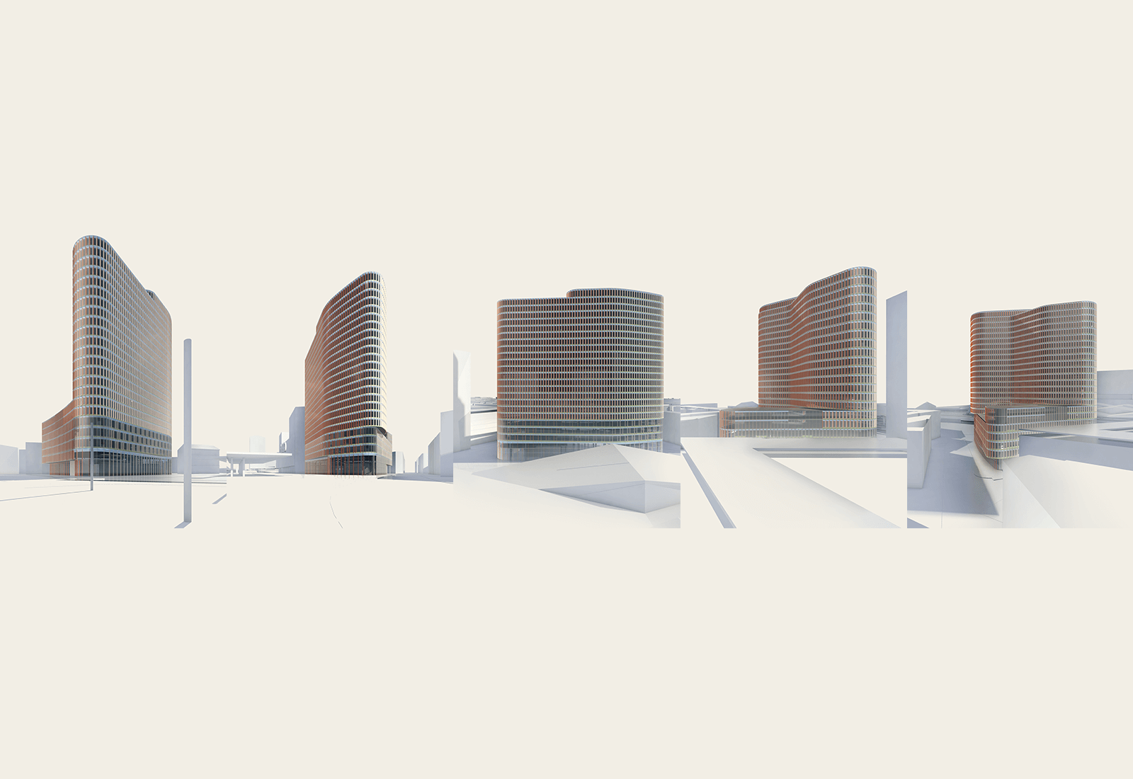Der Hochhausentwurf bereichert die Stadtsilhouette Wiens um einen markanten Punkt, je nach Blickrichtung strahlt das Gebäude verschiedene Material- und Farbstimmungen aus. Der Sitz der ÖBB Konzernzentrale am Standort des geplanten neuen Hauptbahnhofs markiert mit seiner bis auf den Platz herabreichenden Fassade für die Reisenden den Punkt des Ankommens in Wien, gleichzeitig klingen im wechselvollen Farbspiel der Prismenfassade die Erinnerungen der dynamischen Prozesse der Reise nach.