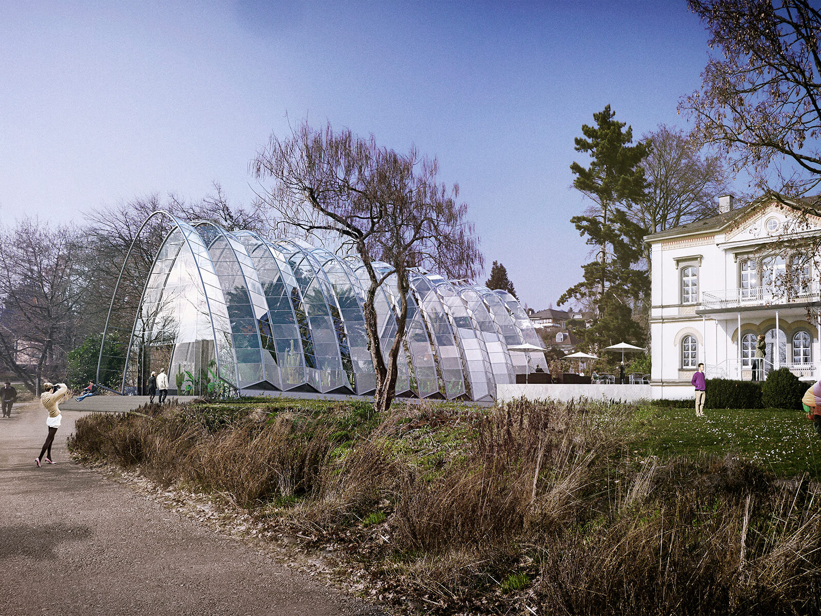 kann, erhält das Pflanzenhaus eine ruhende, statisch und konstruktiv optimierte Hülle, bei der
