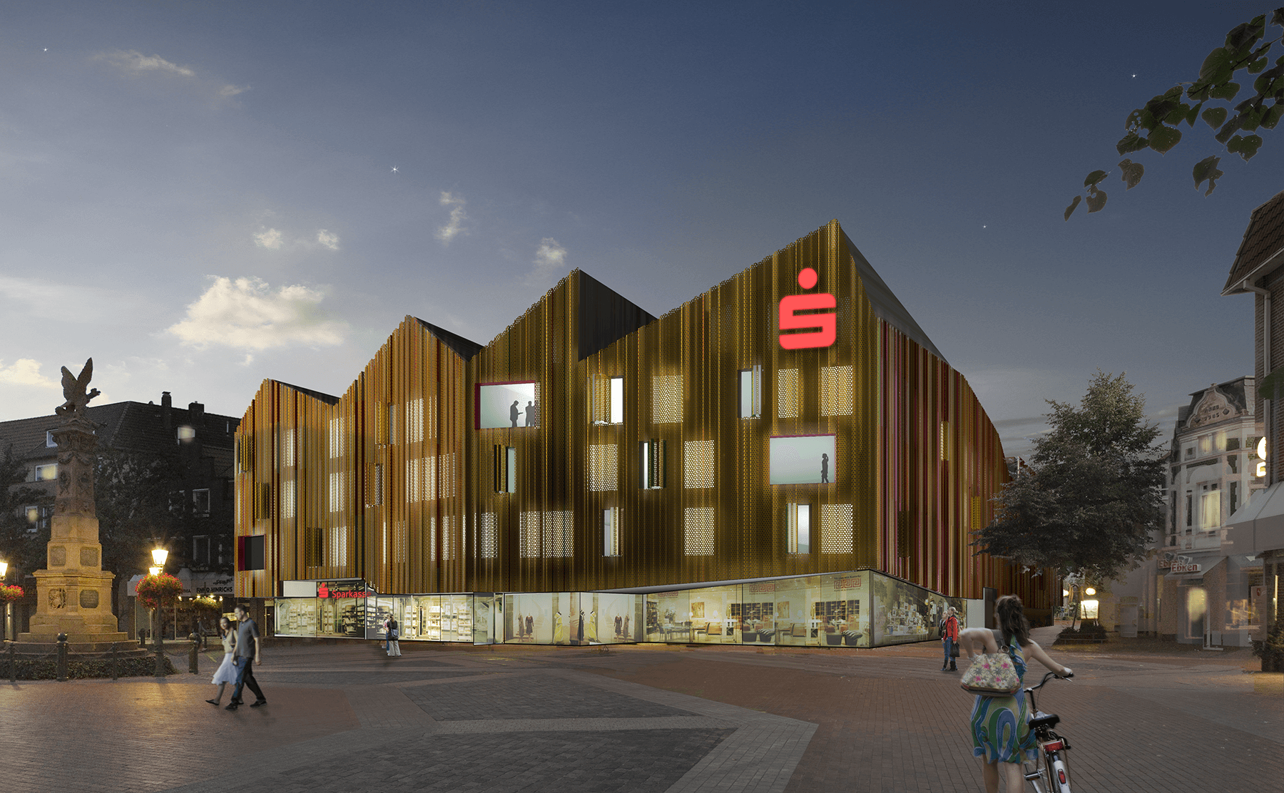 Die Erweiterung der Sparkasse LeerWittmund am Standort Denkmalplatz in Leer beinhaltet die Transformation der gesamten Gebäudestruktur um den wandelnden Anforderungen an ein „modernes Geldhaus“ auch in Zukunft gerecht zu werden. Die funktional und programmatisch notwendigen Veränderungen sollen gleichzeitig genutzt werden, um einen Beitrag zur Neugestaltung und Aufwertung des Denkmalplatzes zu leisten.