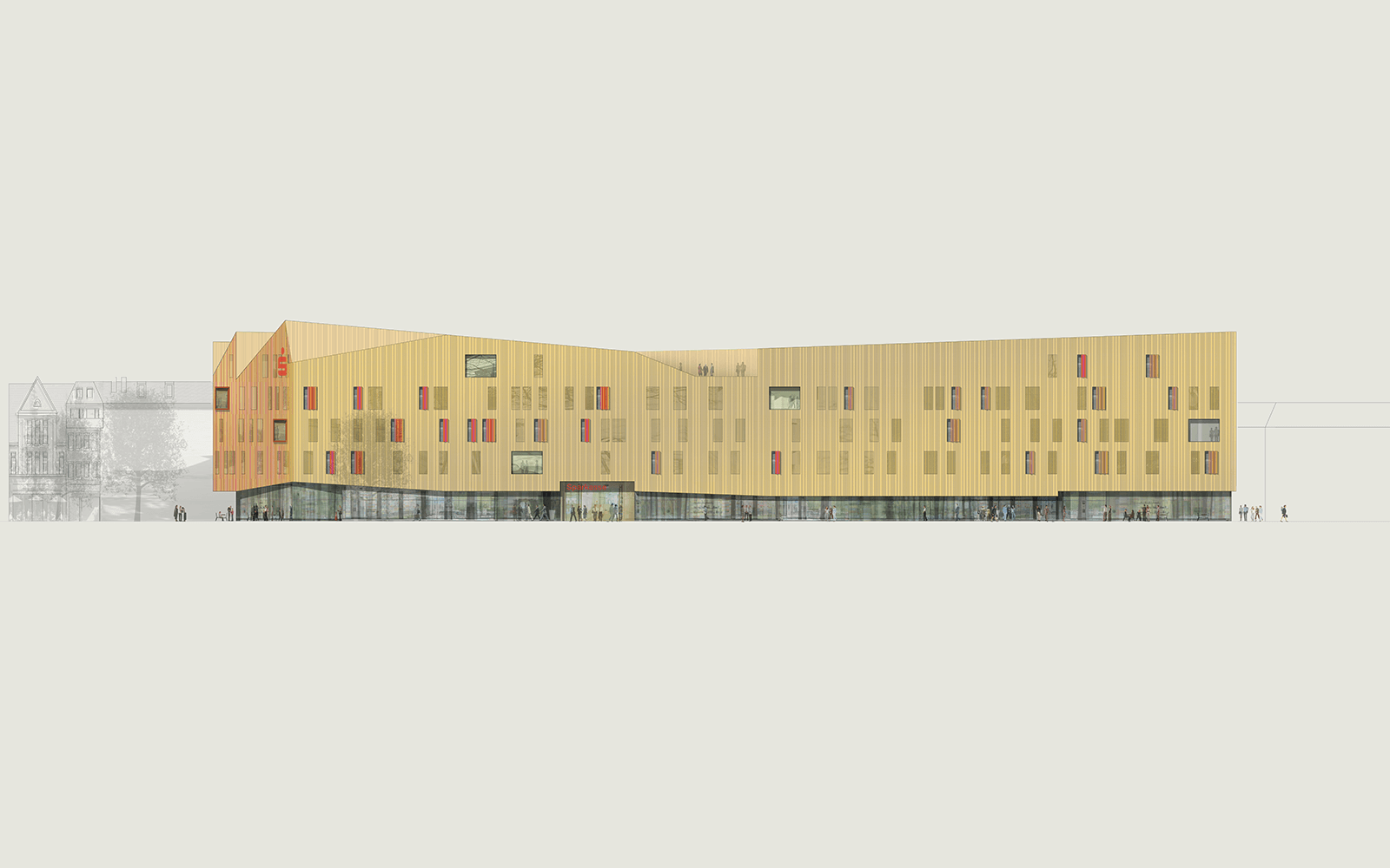 Die historische Stadtstruktur wird in ein modernes Vokabular übersetzt, am Denkmalplatz entsteht ein signifikantes städtebauliches Zeichen. Es gelingt, das Ensemble der gewachsenen Stadtstruktur fortzuführen und in einen neuen Maßstab zu übersetzen.