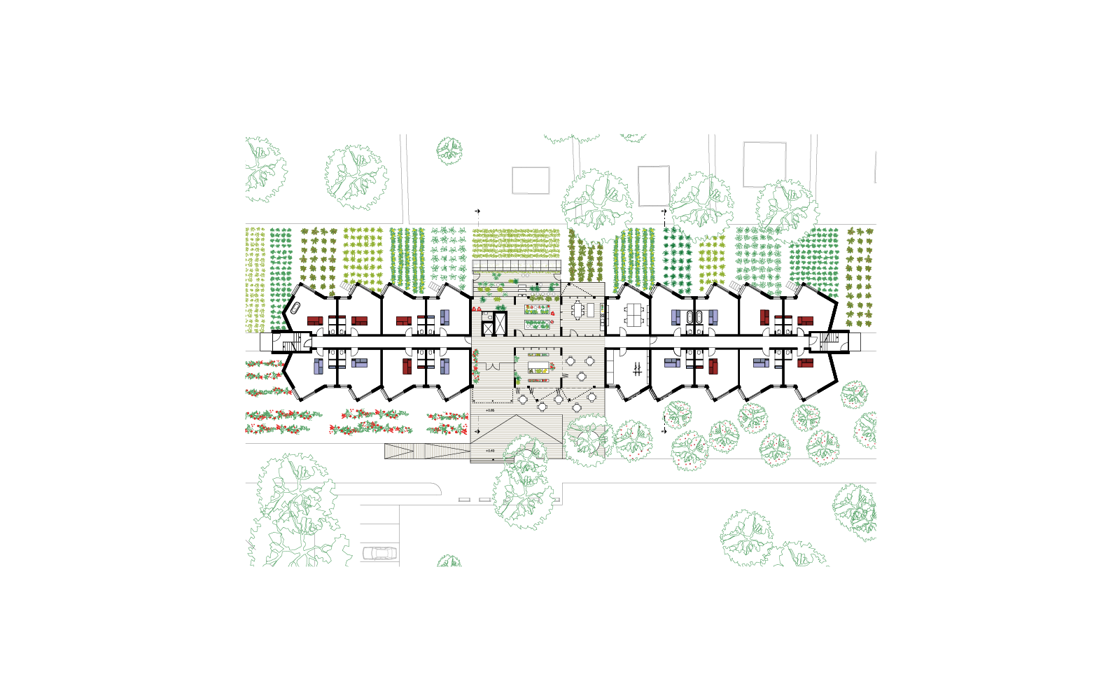 Wir verstehen das Haus in der Zobeltitzstrasse nicht nur als Teil des umgebenden städtebaulichen Ensembles, das „Farmhouse Zobeltitz 117“ ist auch Teil der, in der Stadt an verschiedenen Standorten bestehenden Häusern der GEWOBAG, deren Bewohner verschiedene Themenschwerpunkte verfolgen und untereinander vernetzt sind. Für die vorausgewählten Standorte entstehen Häuser mit eigenständigem Charakter: